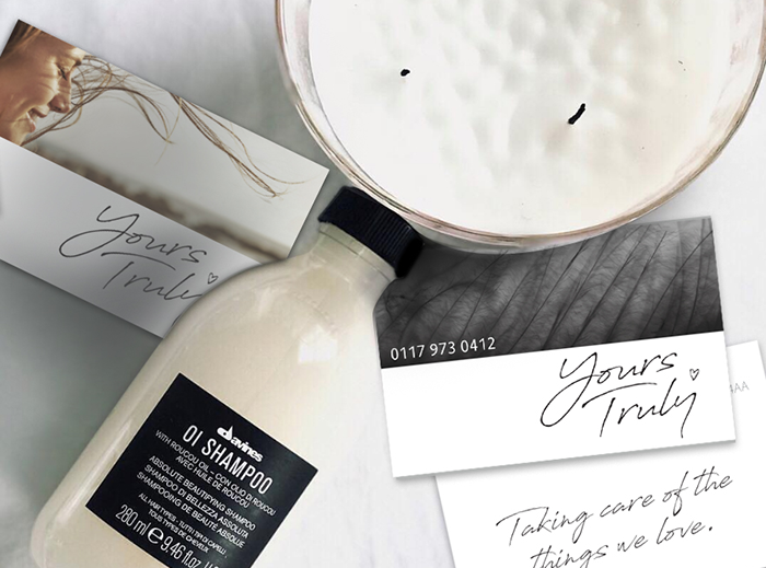 Adaptable branding for an independent hair salon. The salon uses Italian hair products which are eco friendly and use natural ingredients. The brand design reflects their ethos of sustainable beauty. The language used in the strapline 'Taking care of the things we love' captures the essence of the brand. The signature style typography and hand drawn heart add a personal and friendly touch to the overall brand story.