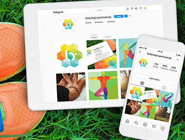 Science and Connectivity form the main theme for this Sports Physio brand. Support imagery provides the human touch and the positioning statement 'back to where you want to be' promotes positive outcomes.